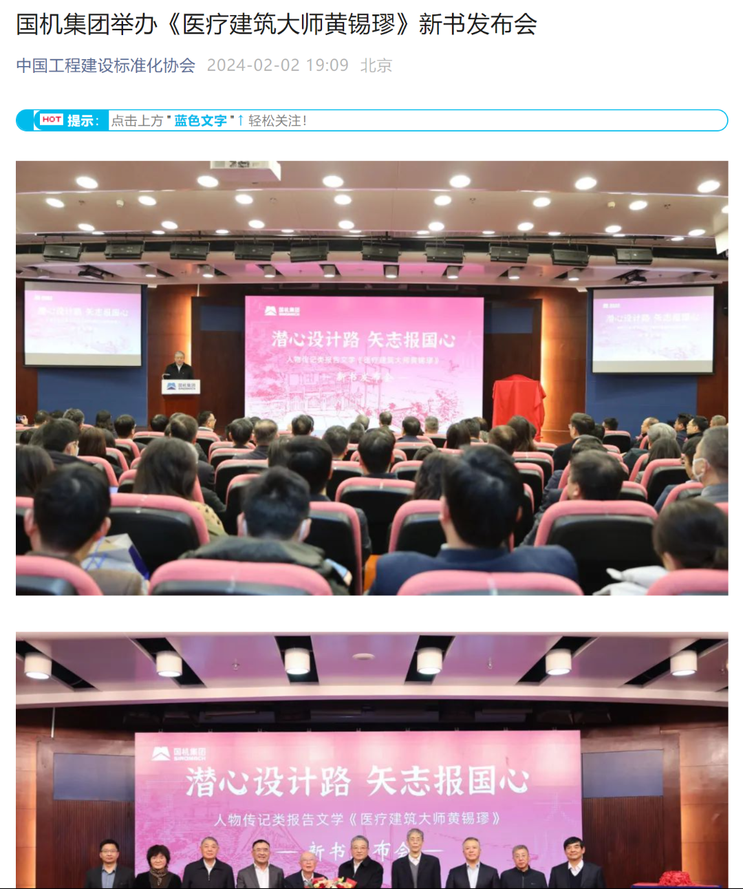日前,國機集團發布新書《醫療建筑大師黃錫璆》,全面生動展現黃錫璆博士潛心設計、矢志報國的優秀品質,受到中國青年網、中國新聞網、中國工業報等多家主流媒體、行業媒體的關注報道。